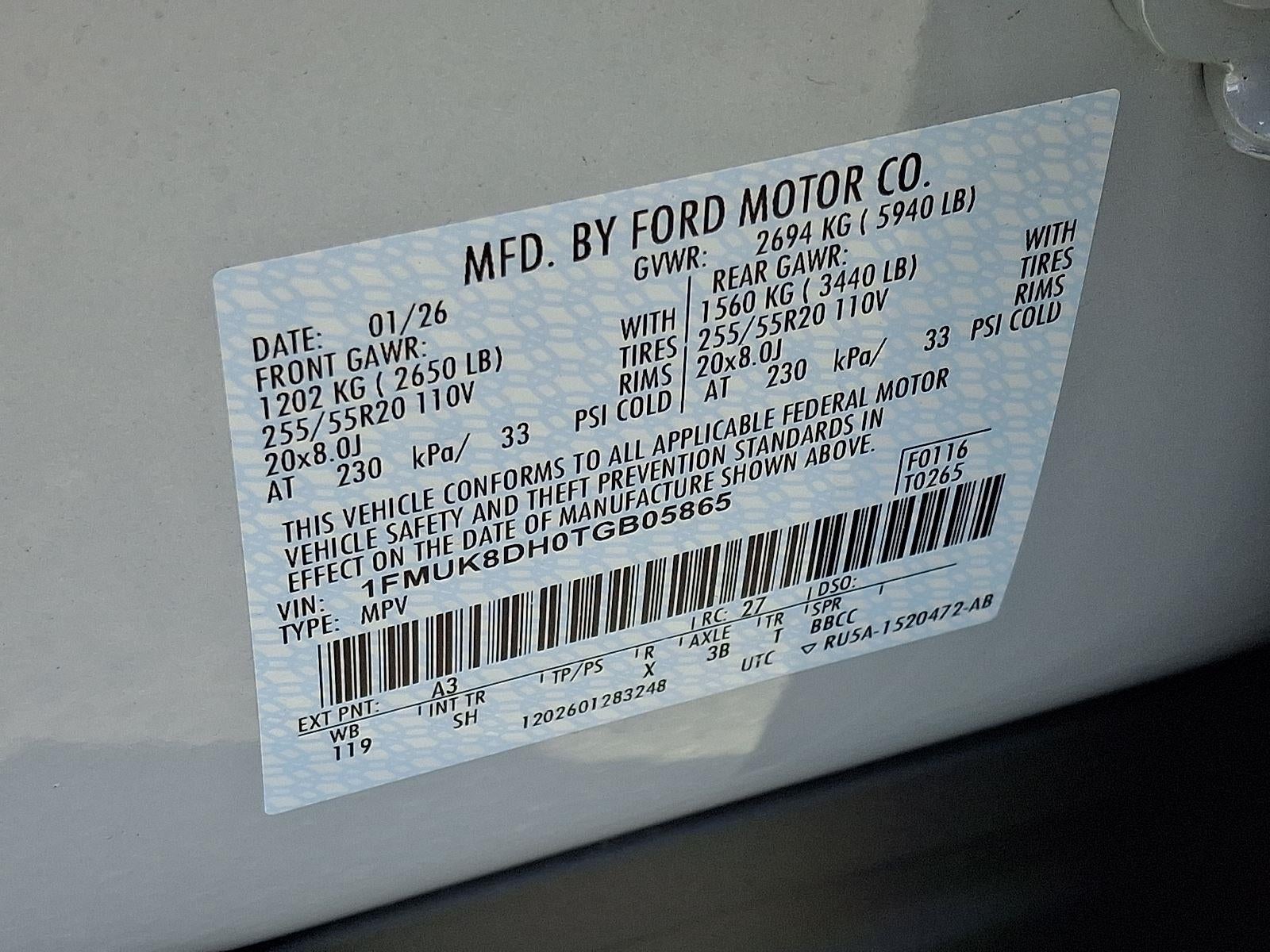 ENGINE: 2.3L ECOBOOST I-4, TRANSMISSION: 10-SPEED AUTOMATIC, EQUIPMENT GROUP 200A STANDARD PACKAGE, WHEELS: 20"" CARBONIZED GRAY-PAINTED ALUMINUM, SPACE WHITE METALLIC, ACTIVE COMFORT PACKAGE, 50 STATE EMISSIONS SYSTEM, 18"" SPARE WHEEL & JACK KIT, SECURICODE KEYLESS ENTRY KEYPAD
