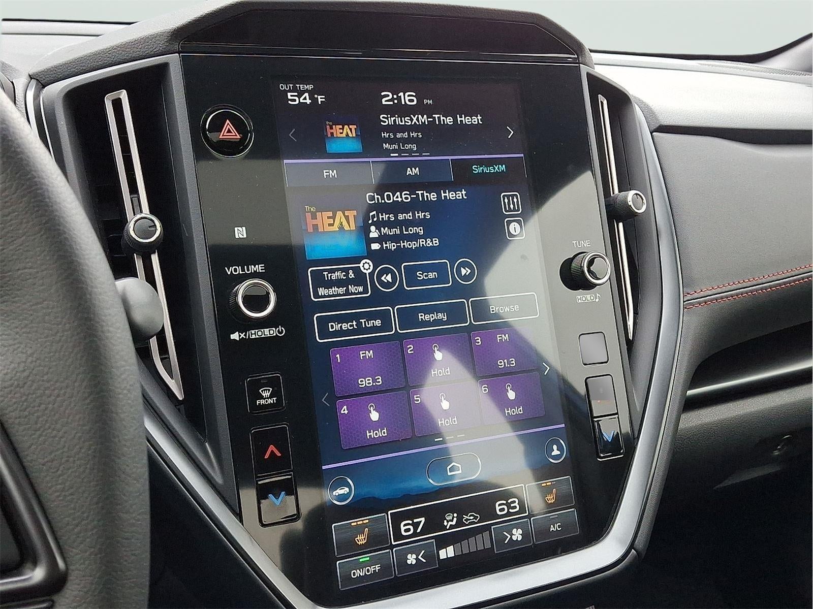 - Radio: Subaru STARLINK 11.6" Multimedia Plus Sys -inc: AM/FM stereo HD Radio, multi-touch gesture high resolution display screen, voice activated controls, Bluetooth® audio streaming connectivity, Bluetooth® hands-free phone connectivity, Bluetooth® hands-free SMS text messaging connectivity (applicable w/compatible cell phone), Near Field Communication (NFC), iPod control capability, rear-vision camera display, SiriusXM All Access radio (4 months free trial/subscription required after), SiriusXM Traffic (3 years free trial/subscription required after), SiriusXM Travel Link (3 years free trial/subscription required after), smartphone integration: Android Auto, Apple CarPlay, STARLINK cloud applications, 576 watt harman/kardon speaker system w/11 speakers and roof mounted audio, satellite and connected services antenna